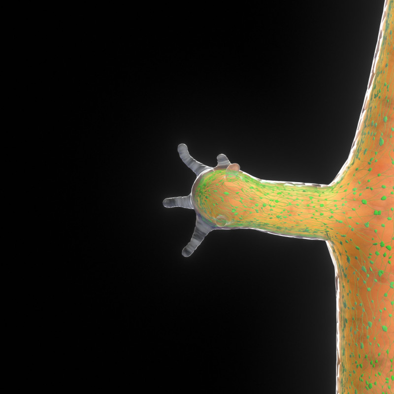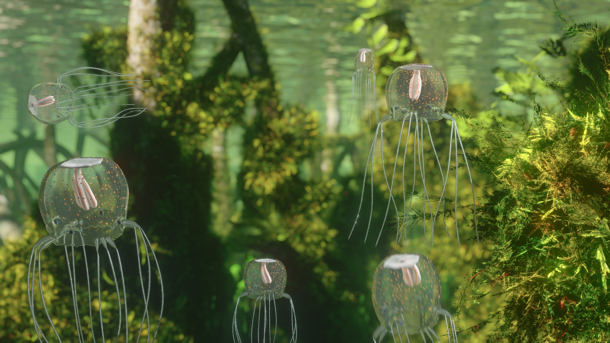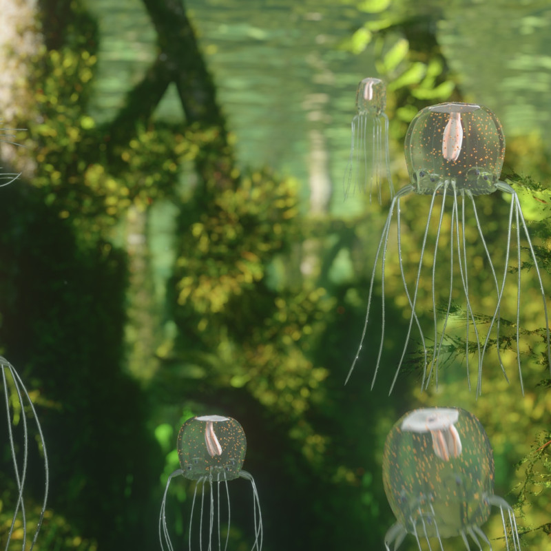 Die Technische Hochschule Lübeck hat in Zusammenarbeit mit Wissenschaftlern mehrerer Universitäten im Bereich der Neurotronics medial aufbereitet mittels Videos, AR, VR Fulldome, Postern etc. Animanto konnte dabei vor allem die spannenden Organismen Hydra und Tripedalia-Qualle kennenlernen, als lebende Organismen bei den Wissenschaftlern unterm Mikroskop. Daraus entstanden dann kurze Clips, die Besonderheiten der Tiere darstellen oder Abläufe visualisieren, die noch nicht abschließend erforscht sind. Es entstanden sowohl HD- als auch Fulldome-Clips für Planetarien, die es ermöglichten, immersiv zu den Quallen in die Magroven abzutauchen.